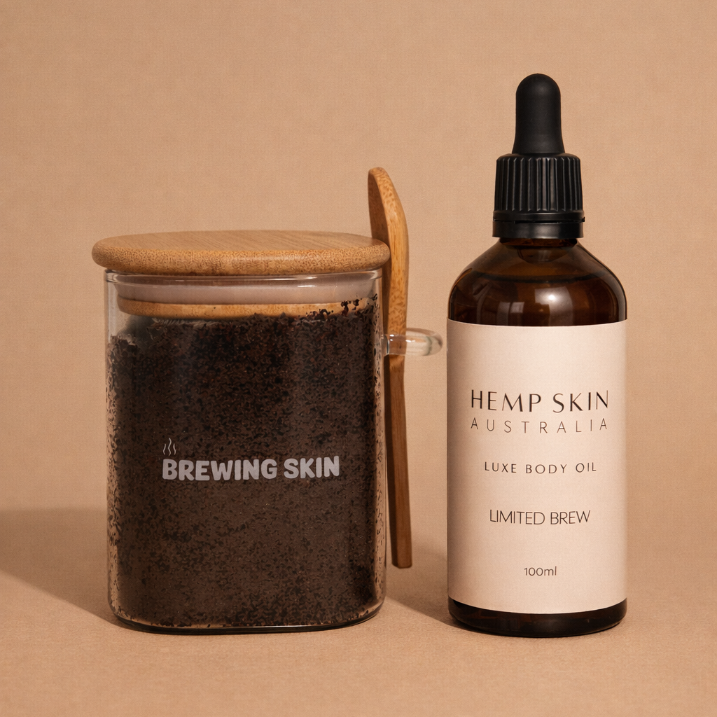 Repurposing fresh coffee grounds, reducing waste and supporting envrionmentally consious skincare.